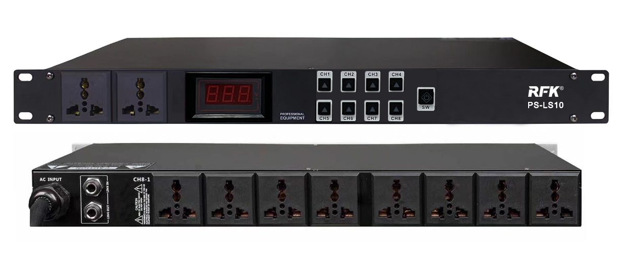 6 功能特點:1.順序開啟逆序關(guān)閉 2.PASS鍵可全通道同時打開3.精準電壓顯示4.面板通道獨立關(guān)閉 5.USB接口最大輸出5V/500MA,可接DJ燈
